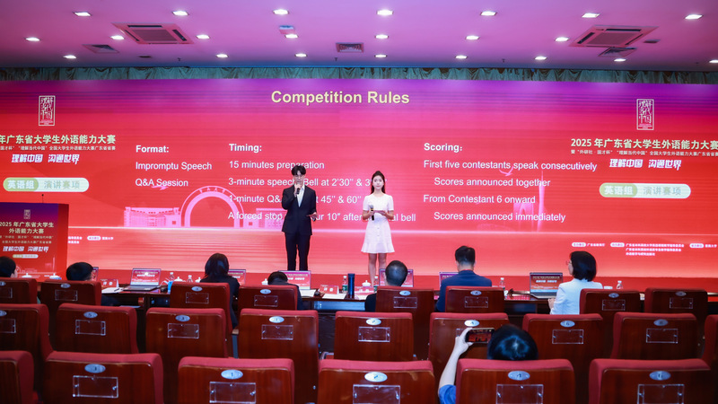 The 2025 Guangdong Provincial College Students' Foreign Language Contest, also known as the provincial round of the "FLTRP·ETIC Cup" "Understanding Contemporary China" National Foreign Language Contest for College Students, was successfully held at Jinan University on November 8-9.
